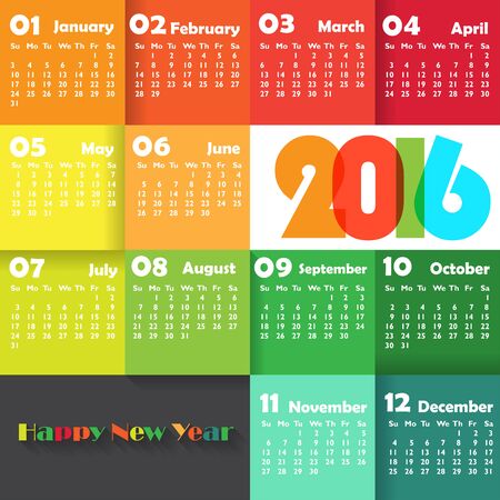 白い背景の 16 年のカレンダーです 月曜始まり 単純なベクトル テンプレート アート のイラスト素材 ベクタ Image